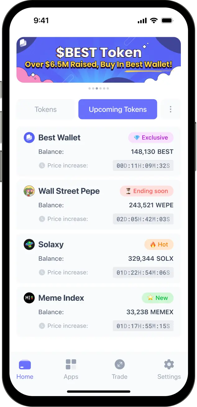 You can download the Best Wallet app directly from the App Store or Google Play Store to create your multi-chain crypto wallet in minutes. Once set up, you can start buying or receiving crypto instantly, plus swap your funds and explore our Upcoming Tokens launchpad.